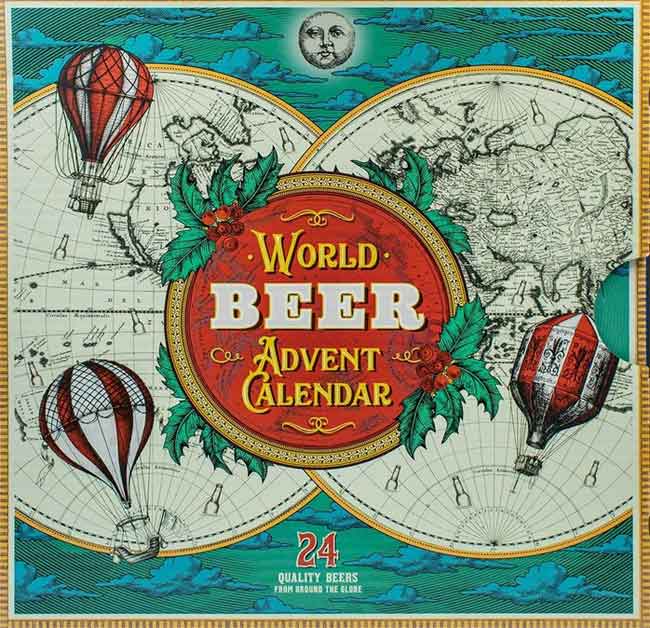 24 cervezas mundiales de calidad para celebrar la cuenta atrás para la Navidad. Incluye las siguientes cervezas: Ichnusa Anima Sarda, Stella Artois, Marston's Resolution Premium Beer, Amstel Bier, Peroni Red, Tsingtao Importado Premium Beer, Kronenbourg 1664, Kingfisher Premium Lager Beer, Super Bock, Pravha Pilsner, Quilmes Clasica, Belhaven 1719 Pale Ale. Samuel Adams Boston Lager, Warsteiner Premium Beer, Asahi Super Dry, Tiger Asian Beer, Mythos Hellenic Lager Beer, Windhoek Premium Lager, Cali Pale, Moosehead Canadian Lager, Brahma Premium Lager, Tuborg Green, Vol Singha Premium Import Lager Beer, Estrella Galicia World Lager.